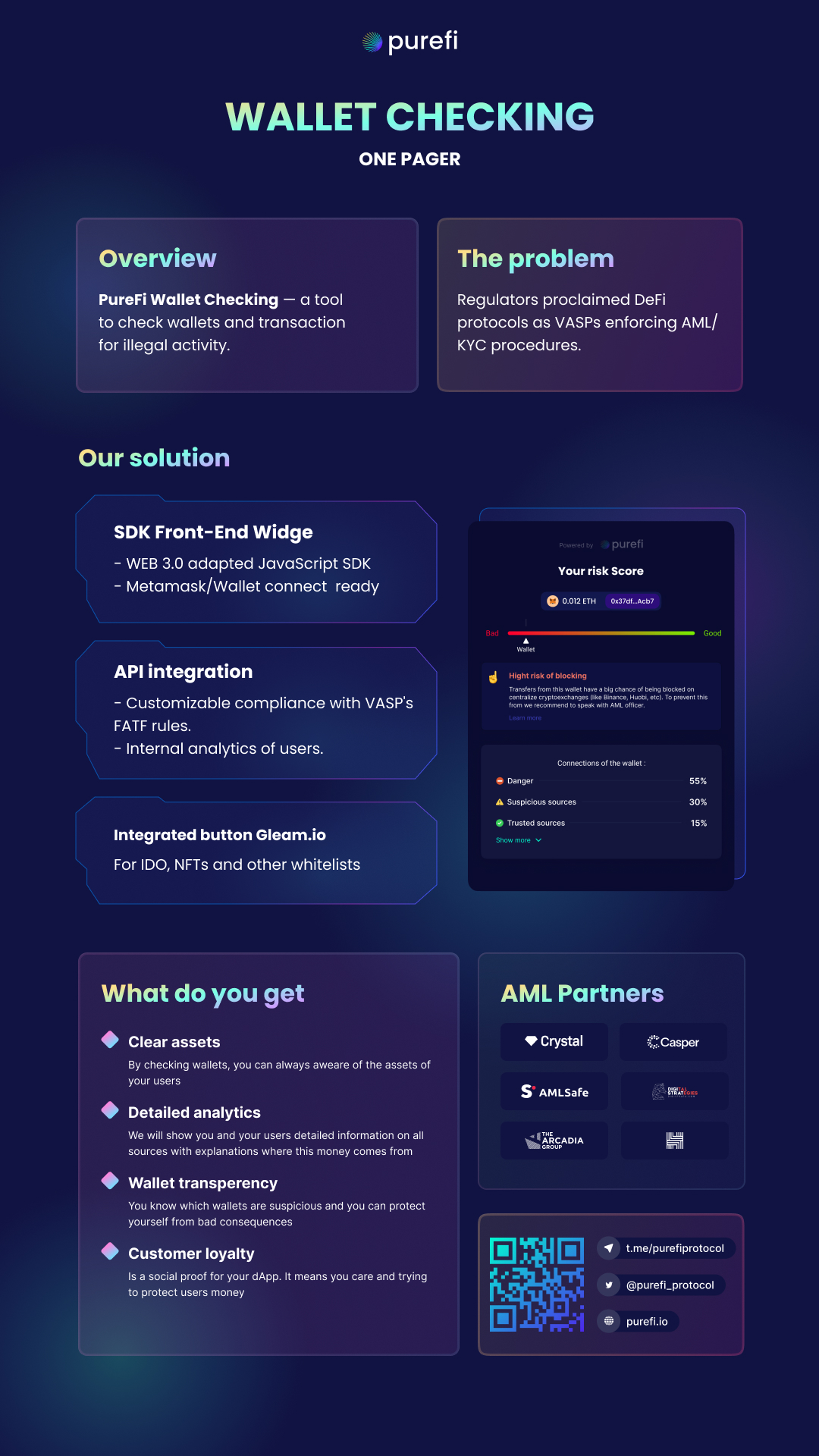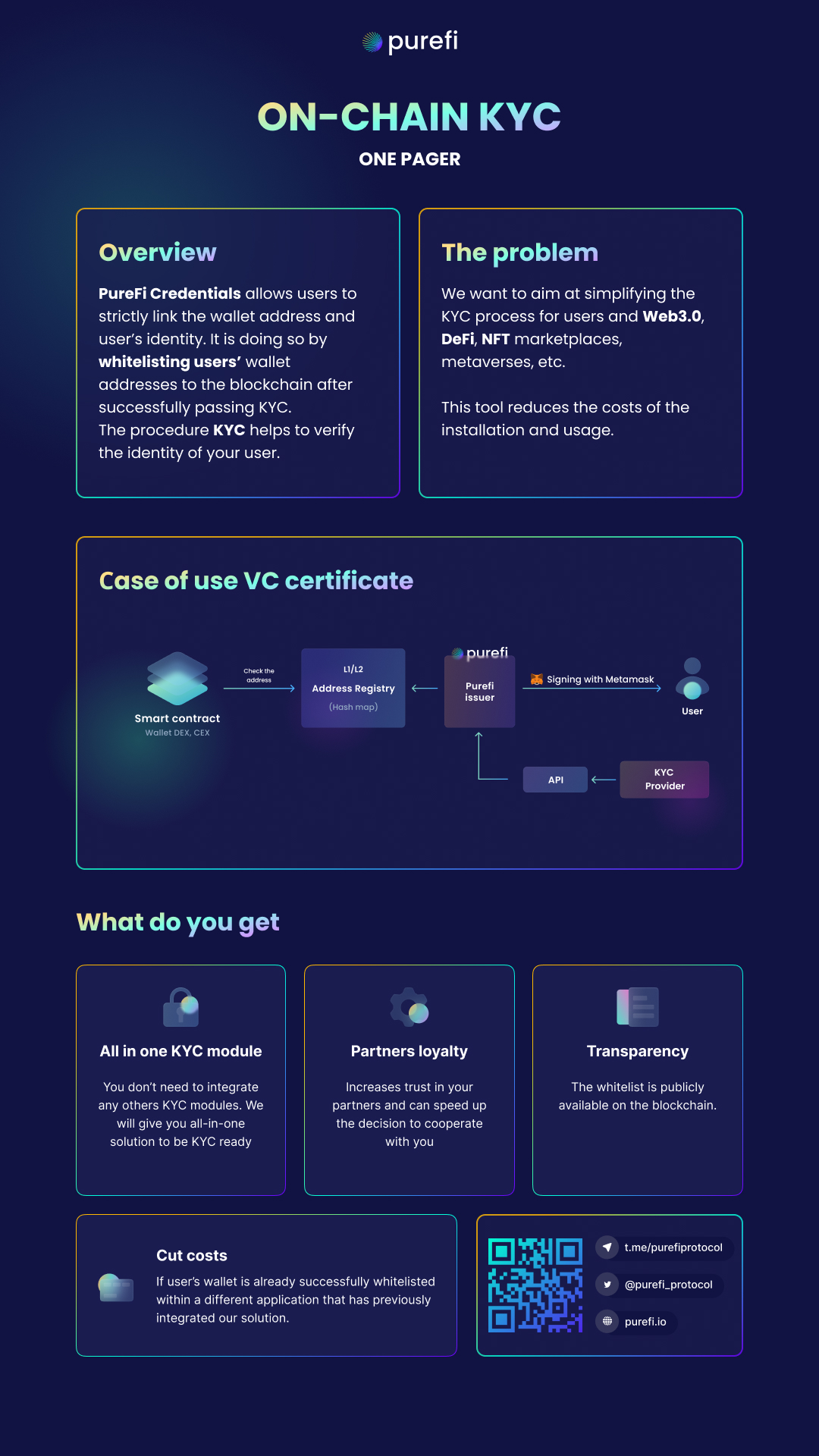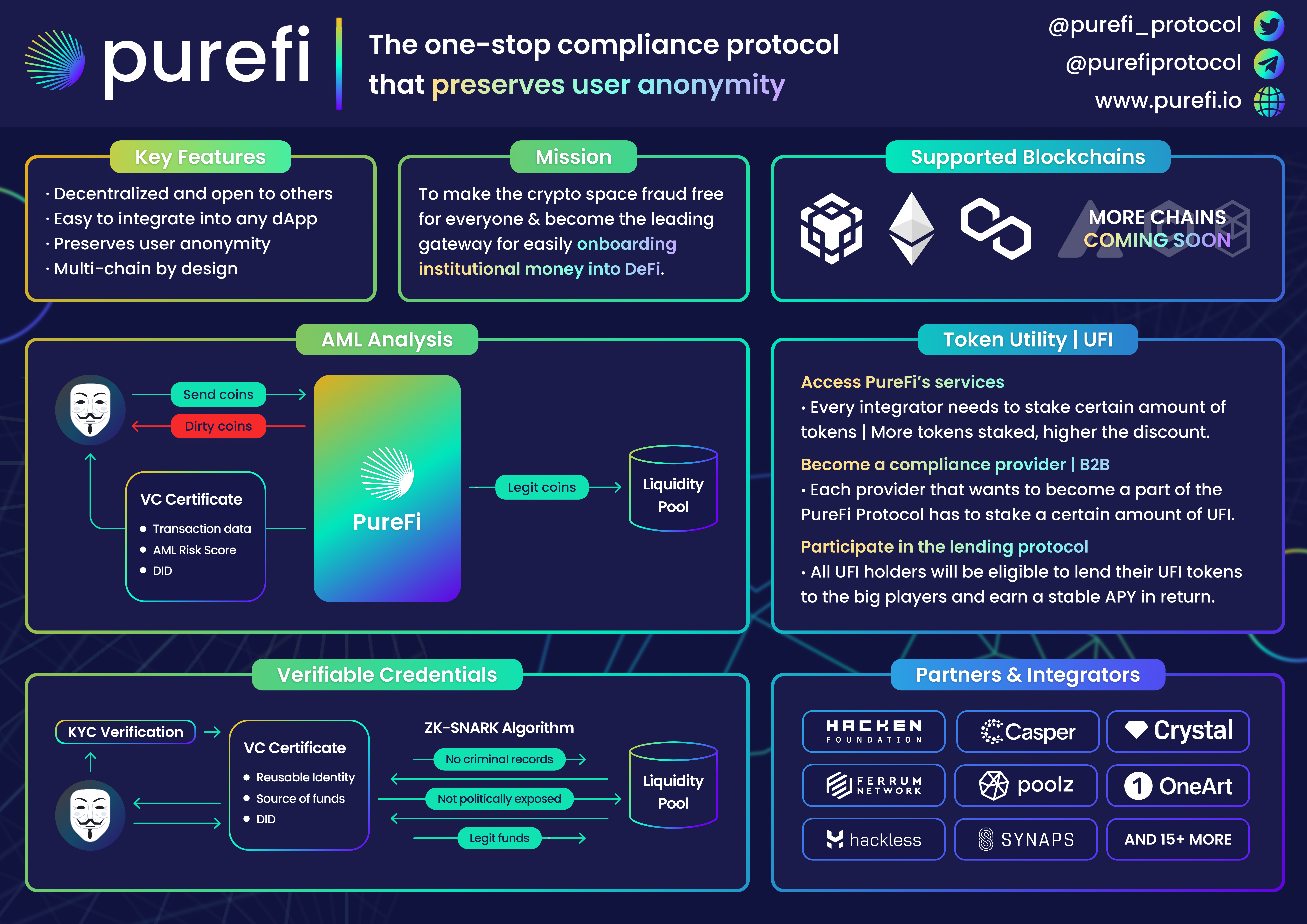 On this pageInfographicsThis page contains infographics that have been released by the PureFi Team and the community.General One PagersProduct One Pagers
